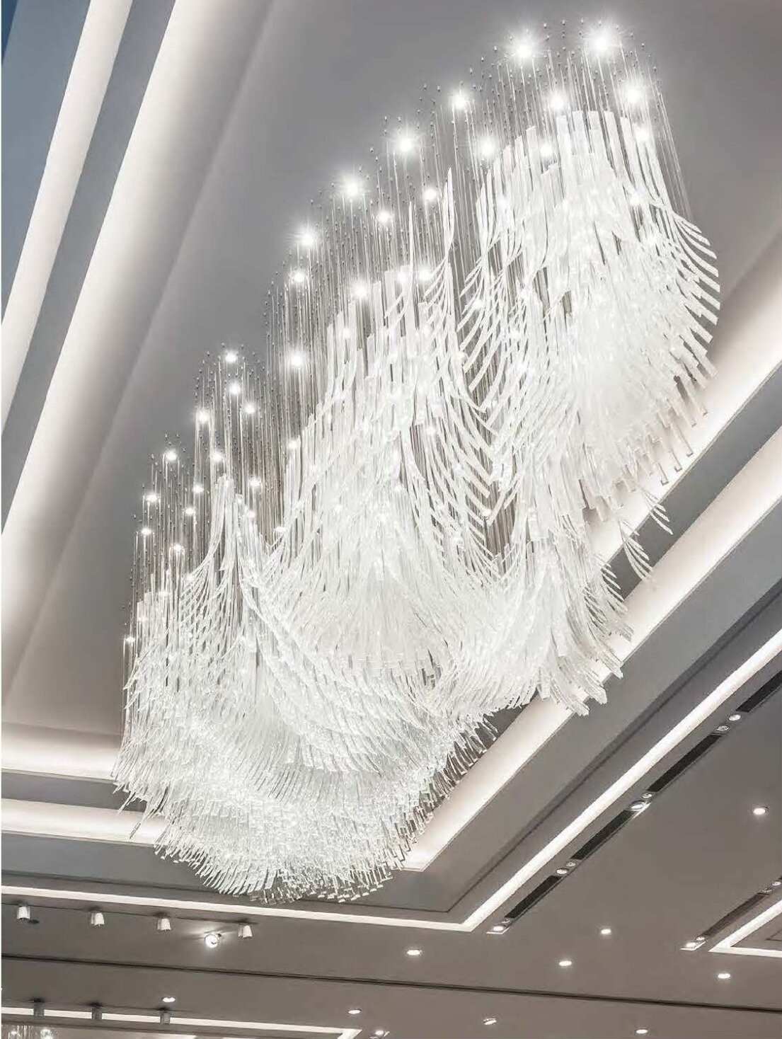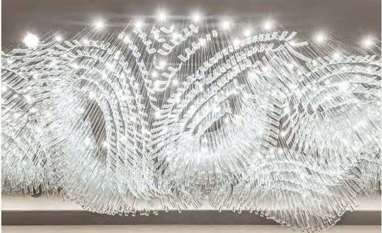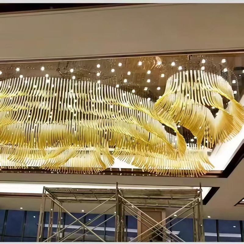 3,Lustrero del vestíbulo del hotel con tubos de vidrio transparentes doblados