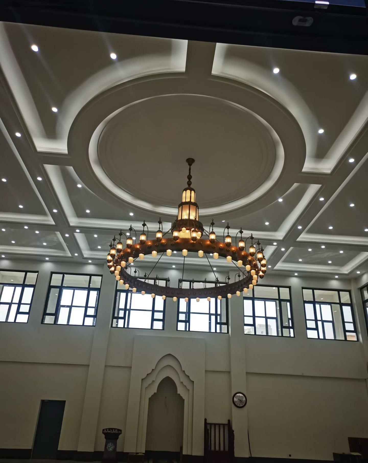 This fully customizable large-scale chandelier is designed specifically for religious spaces including mosques, churches, and ceremonial halls. Featuring intricate Islamic-inspired metalwork in luxury gold finish and high-transparency crystal embellishments, it creates a breathtaking spiritual focal point for monumental worship spaces.